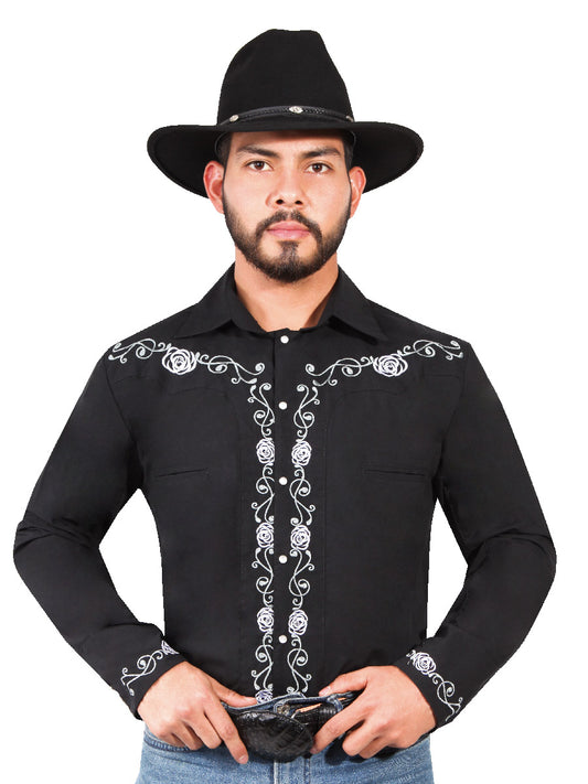 Camisa Vaquera Bordada Manga Larga Negro para Hombre 'El General' - ID: 40987