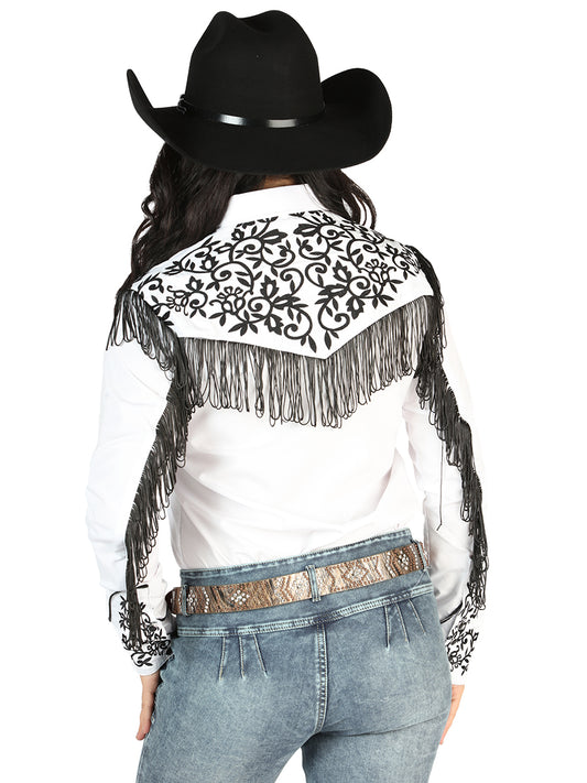 Camisa Vaquera Manga Larga Bordada Blanco/Negro para Mujer 'El Señor de los Cielos' - ID: 44182