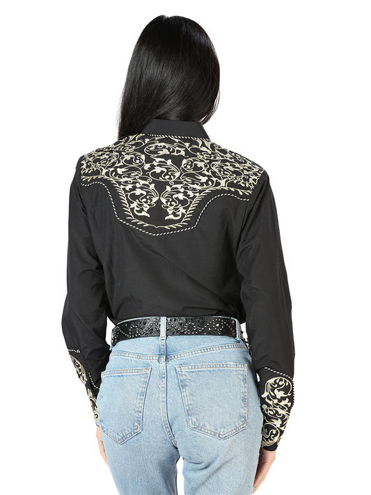 Camisa Vaquera Manga Larga Bordada Negro para Mujer 'El Señor de los Cielos' - ID: 126680