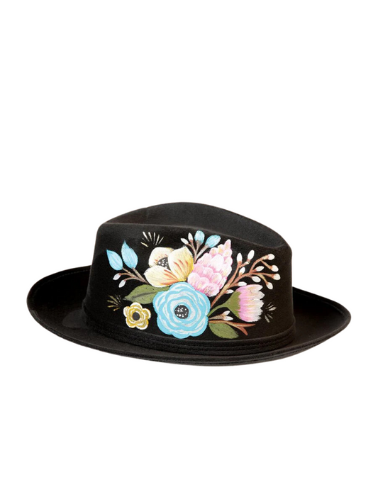 Sombrero Artesanal Floral Pintado a Mano de Piel Gamuza para Mujer 'Mexico Artesanal' - ID: 603719