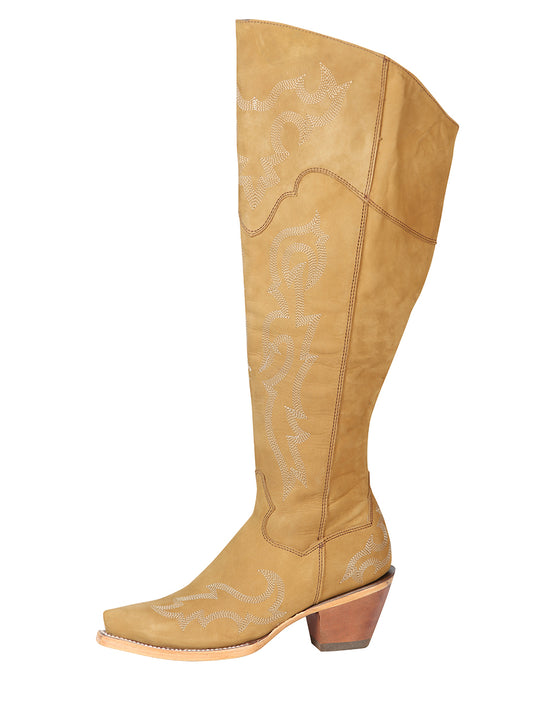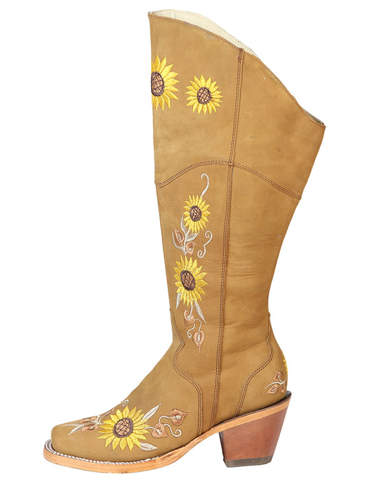 Botas Vaqueras Altas con Tubo Bordado de Girasoles de Piel Nobuck para Mujer 'El General' - ID: 43916
