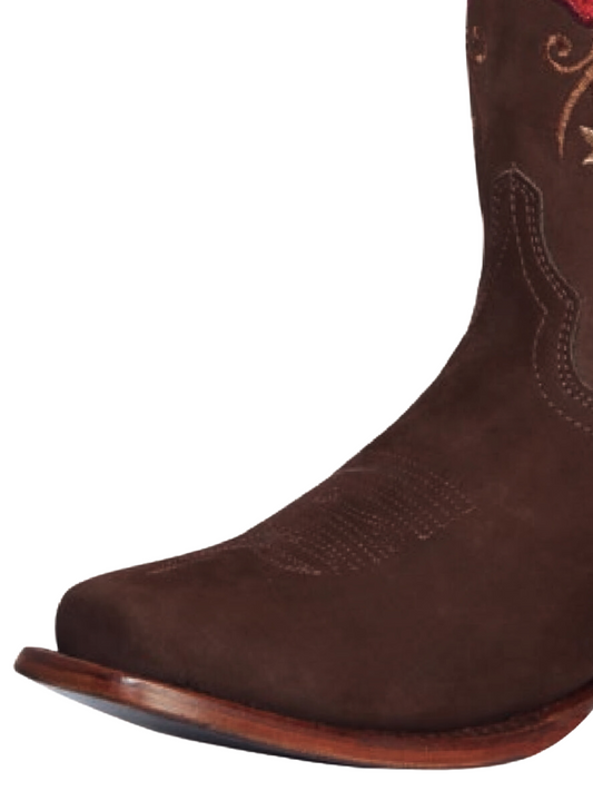 Botas Vaqueras Rodeo con Tubo Bordado de Flores de Piel Nobuck para Mujer 'El General' - ID: 42025