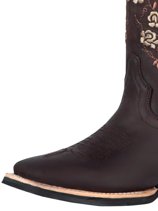 Botas Vaqueras Rodeo con Tubo Bordado de Flores de Piel Genuina para Mujer 'El General' - ID: 44635