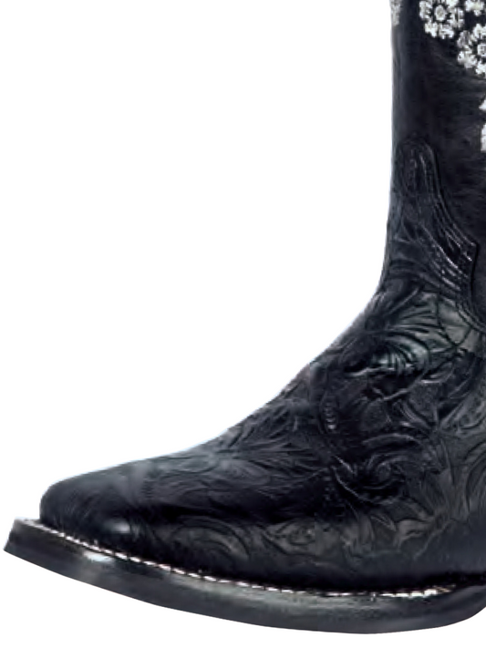 Botas Vaqueras Rodeo con Grabado Floral de Piel Genuina para Mujer 'El General' - ID: 44636