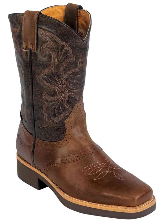Men's Genuine Leather Soft Toe Pull-On Tube Rodeo Work Boots 'El General' - ID: 44690