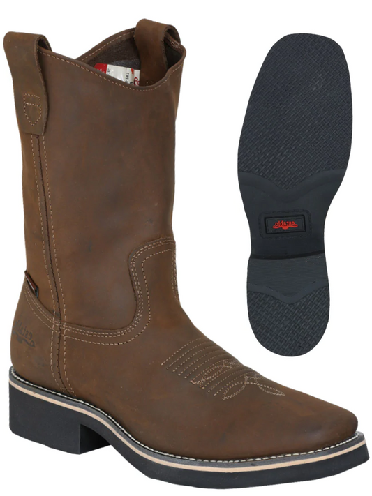 Men's Genuine Leather Soft Toe Pull-On Tube Rodeo Work Boots 'El General' - ID: 44685