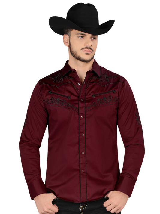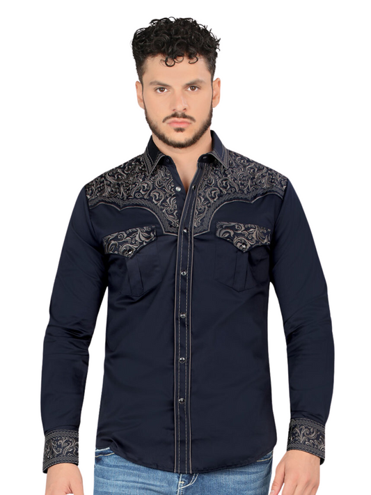 Men's Long Sleeve Mexican Cowboy Shirt with Snaps 'Montero' - ID: 0459