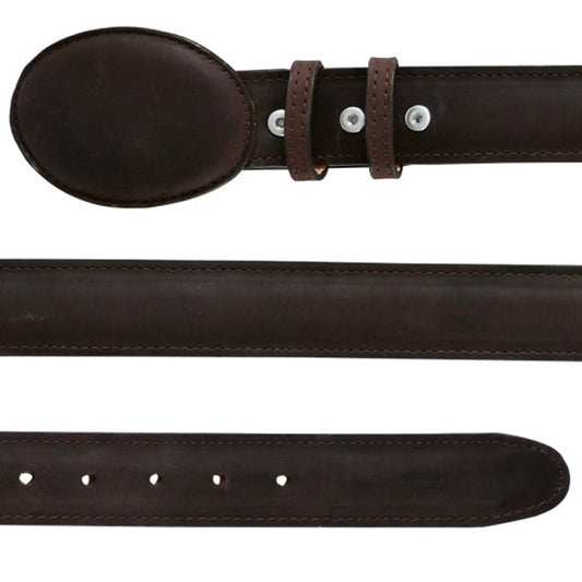Genuine Leather Cowboy Belt for Men with Oval Buckle, 1 1/2" Width 'El General' - ID: 21274