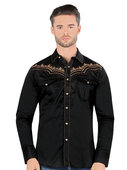Charro Embroidered Long Sleeve Black Cowboy Shirt for Men 'The Lord of the Skies' - ID: 42879